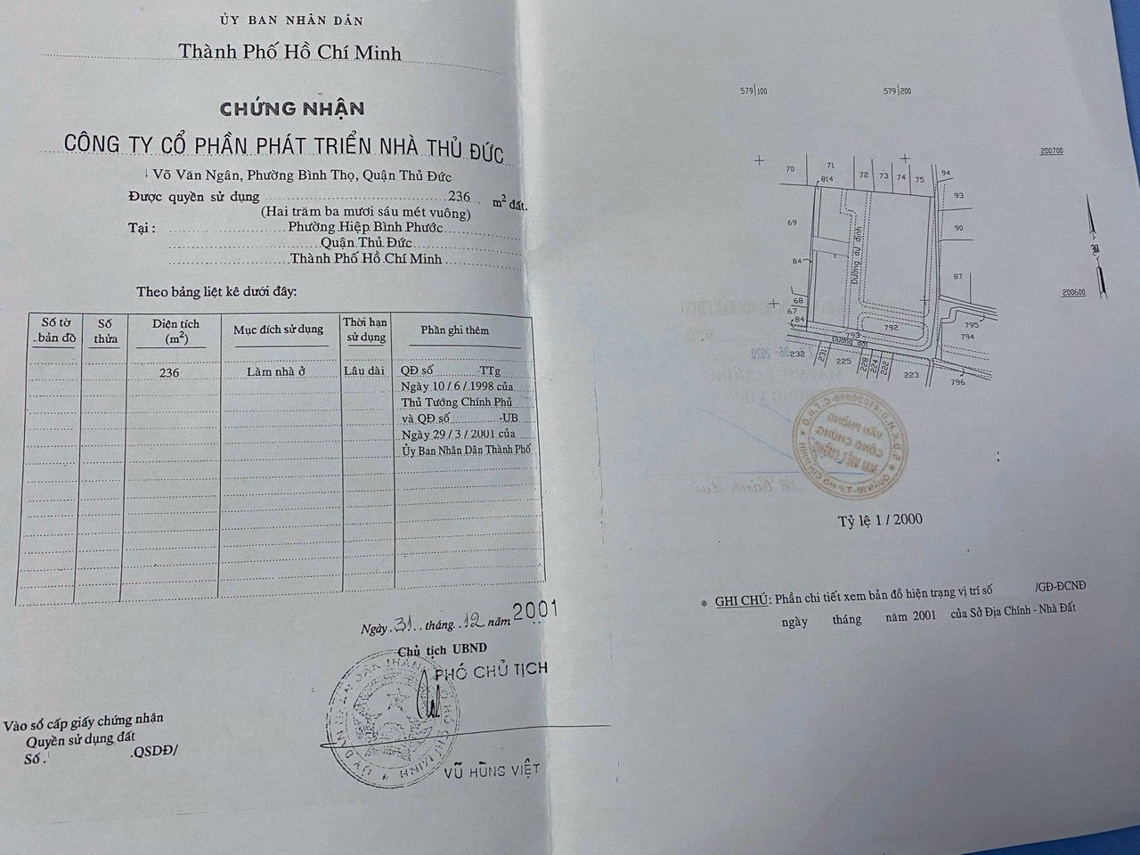 Địa chỉ tài sản: đường QL13, Phường HBP, Phường Hiệp Bình Phước, Quận Thủ Đức, Hồ Chí Minh