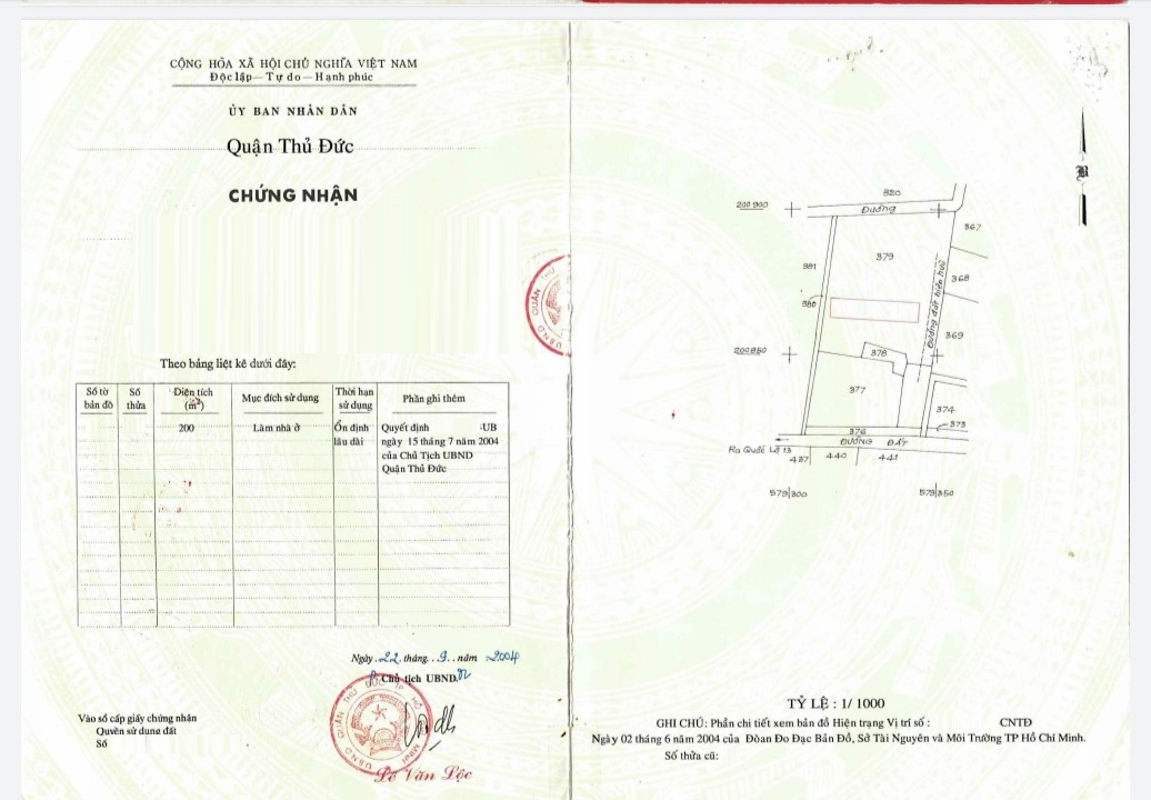 Địa chỉ tài sản: Quốc lộ 13, Phường Hiệp Bình Phước, Phường Hiệp Bình Phước, Quận Thủ Đức, Hồ Chí Minh