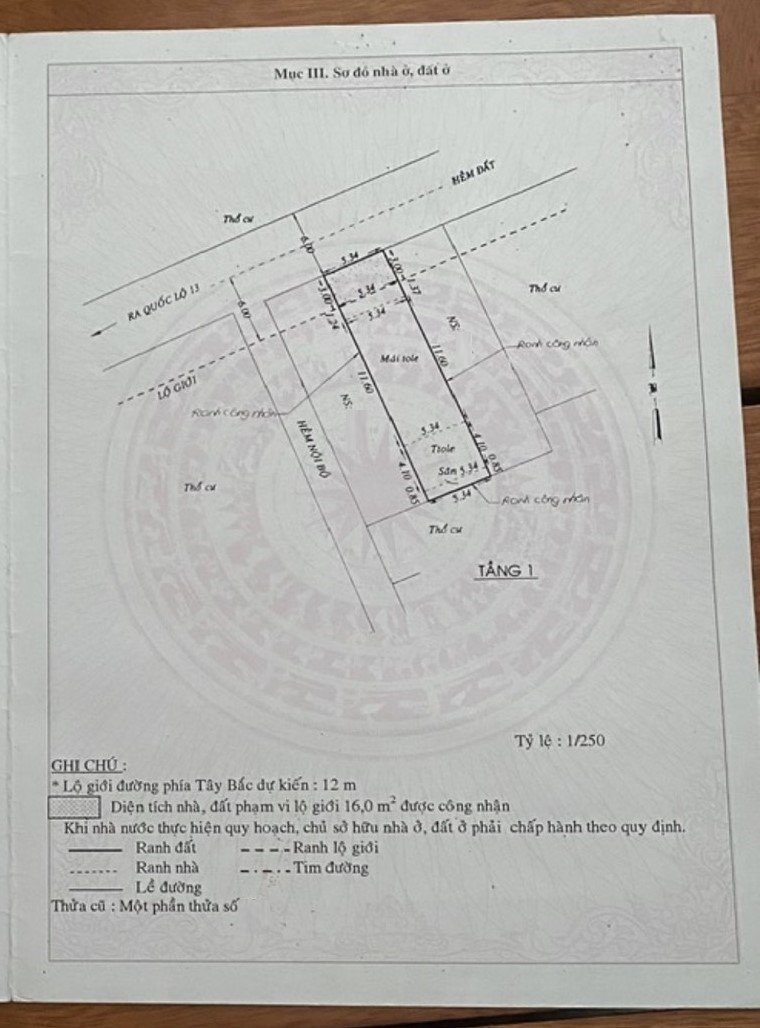 *Diện tích đất công nhận: 111.3 m2. Ngang 5.34m x Dài 20.84m.