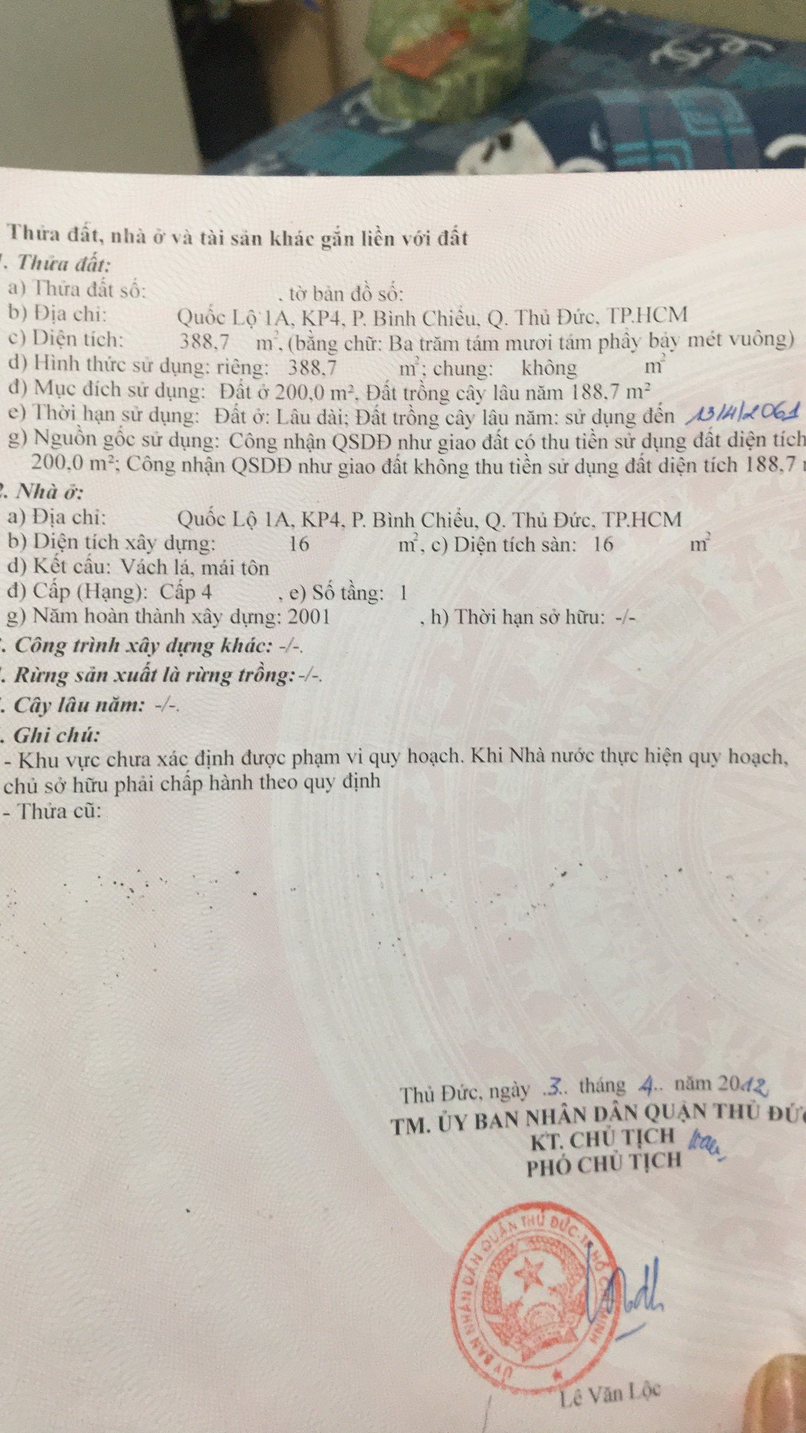 Địa chỉ tài sản: Đường quốc lộ 1A, Phường Bình Chiểu, Phường Bình Chiểu, Quận Thủ Đức, Hồ Chí Minh