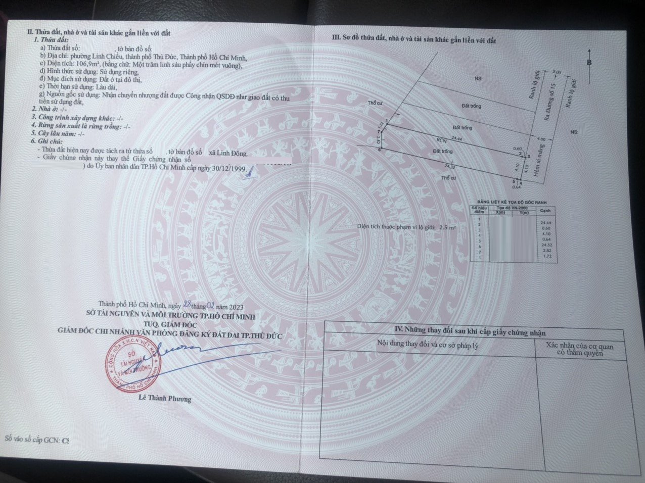 *Diện tích đất công nhận: 106.9m2. Ngang 4.1m x Dài 24.44m.