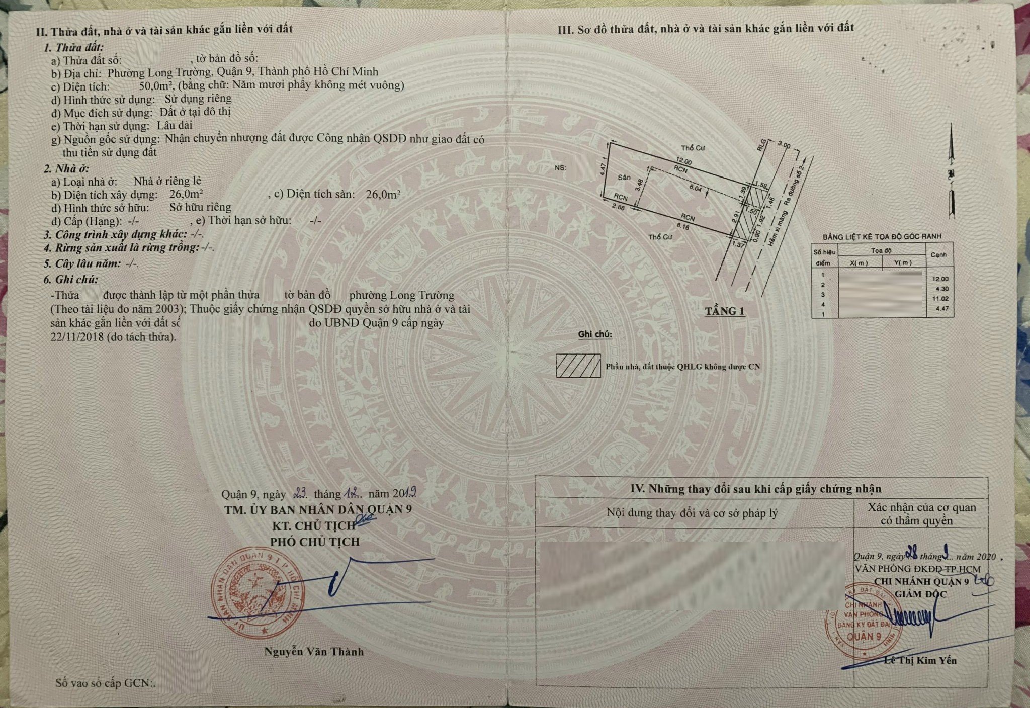 *Diện tích đất công nhận: 50m2. Ngang 4.3m x Dài 12m. Nở hậu 4.47m