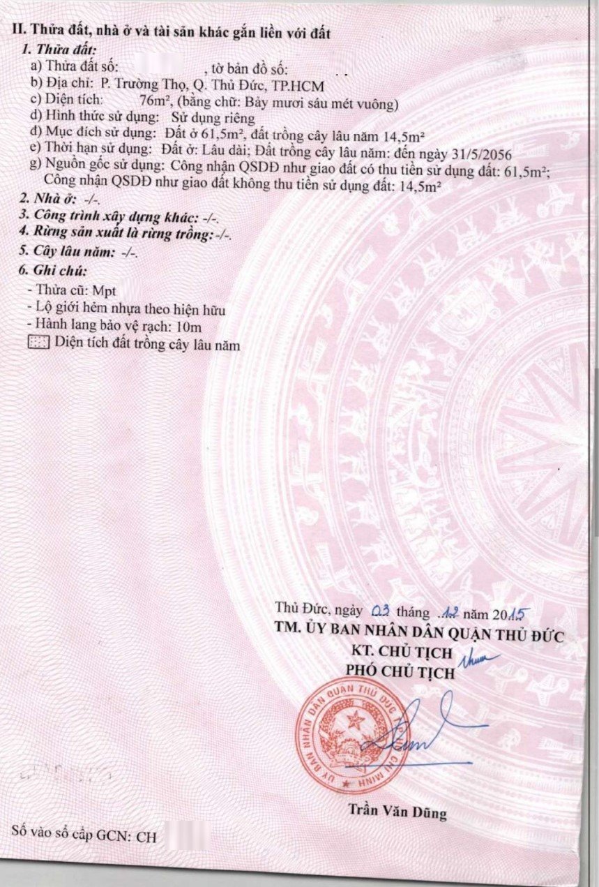 *Diện Tích đất công nhận: 76m2 ngang 4m x dài 19m