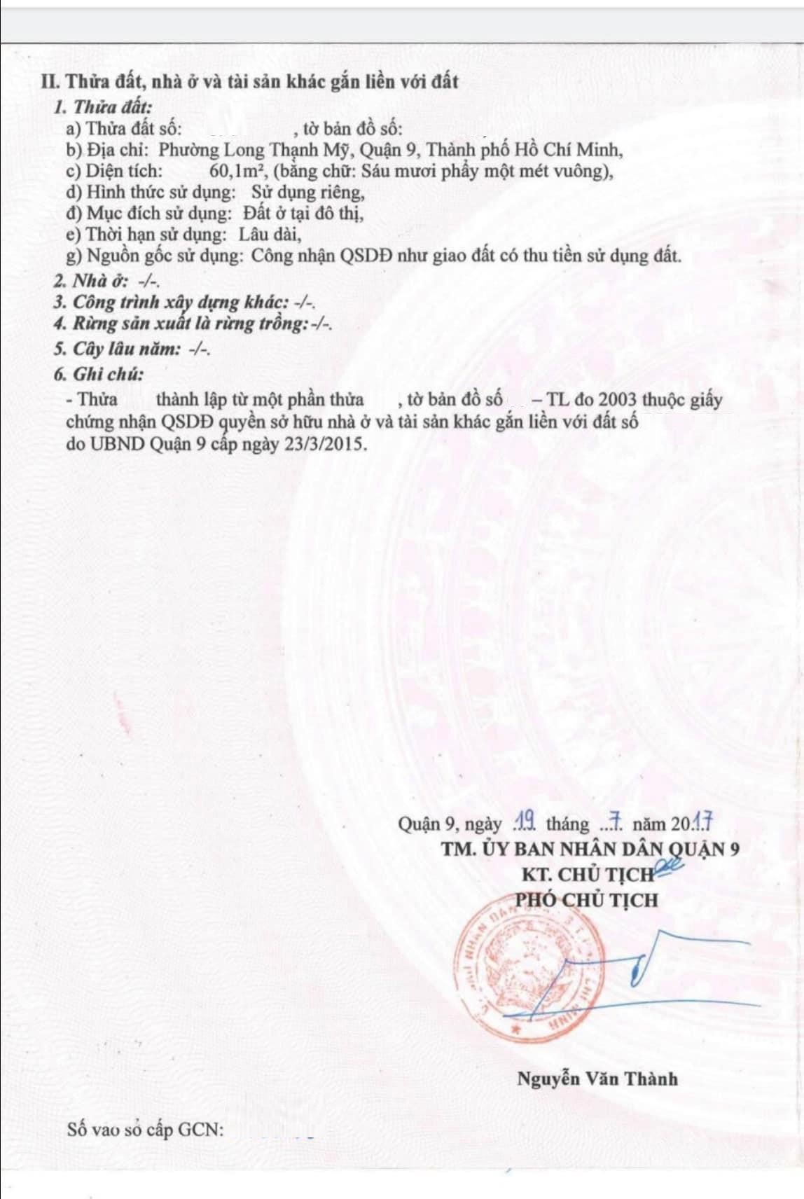 Địa chỉ tài sản: đường số 21, phường Long Thạnh Mỹ, TP Thủ Đức., Phường Long Thạnh Mỹ, Quận 9, Hồ Chí Minh