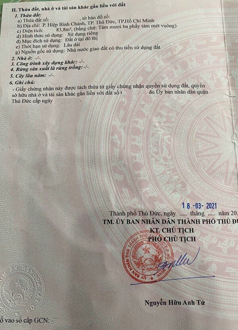 Địa chỉ tài sản: đường số 38, Phường Hiệp Bình Chánh, Phường Hiệp Bình Chánh, Quận Thủ Đức, Hồ Chí Minh