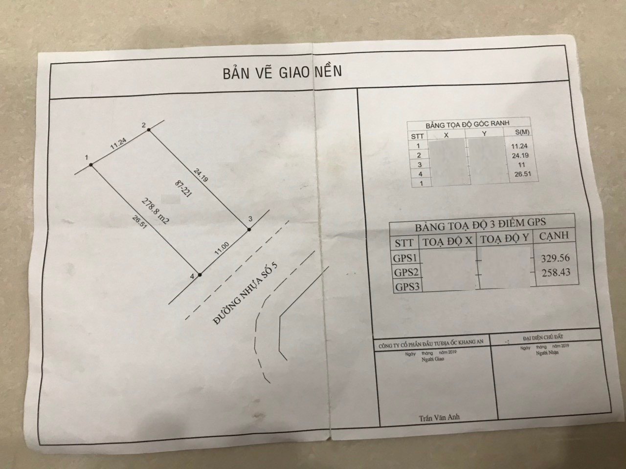 *Diện Tích đất công nhận: 278.8 m2 ngang 11 m x dài 26.5 m