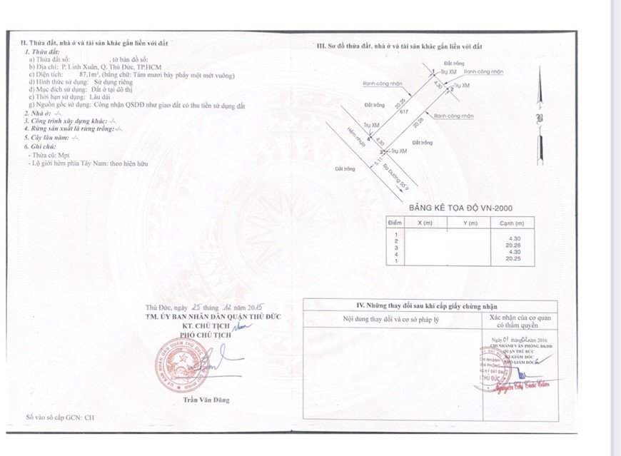*Diện tích đất công nhận: 87.1m2. Ngang 4.3m x Dài 20.25m
