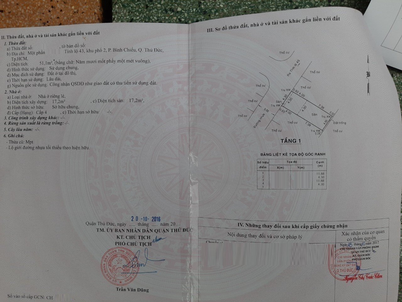 *Diện Tích đất công nhận: 51.1 m2 ngang 4.3 m x dài 11.88 m