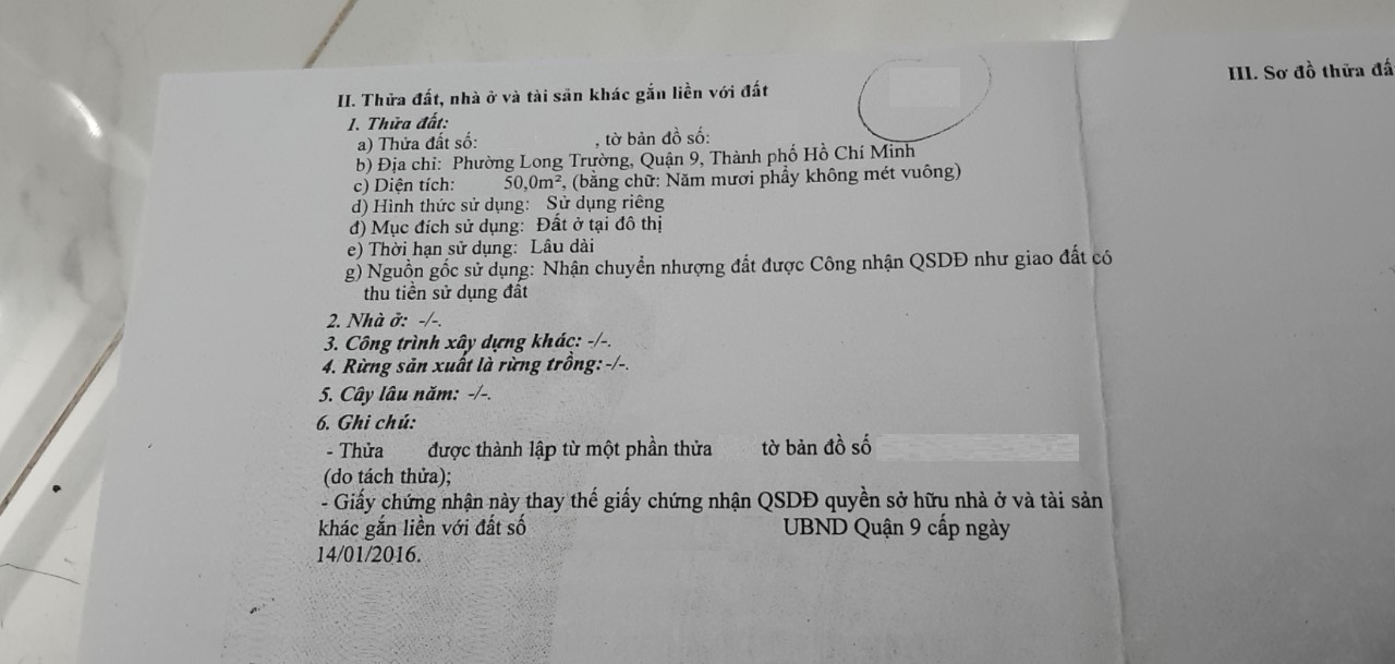 Địa chỉ tài sản: Đường Võ Văn Hát, Phường Long Trường. , Phường Long Trường, Quận 9, Hồ Chí Minh