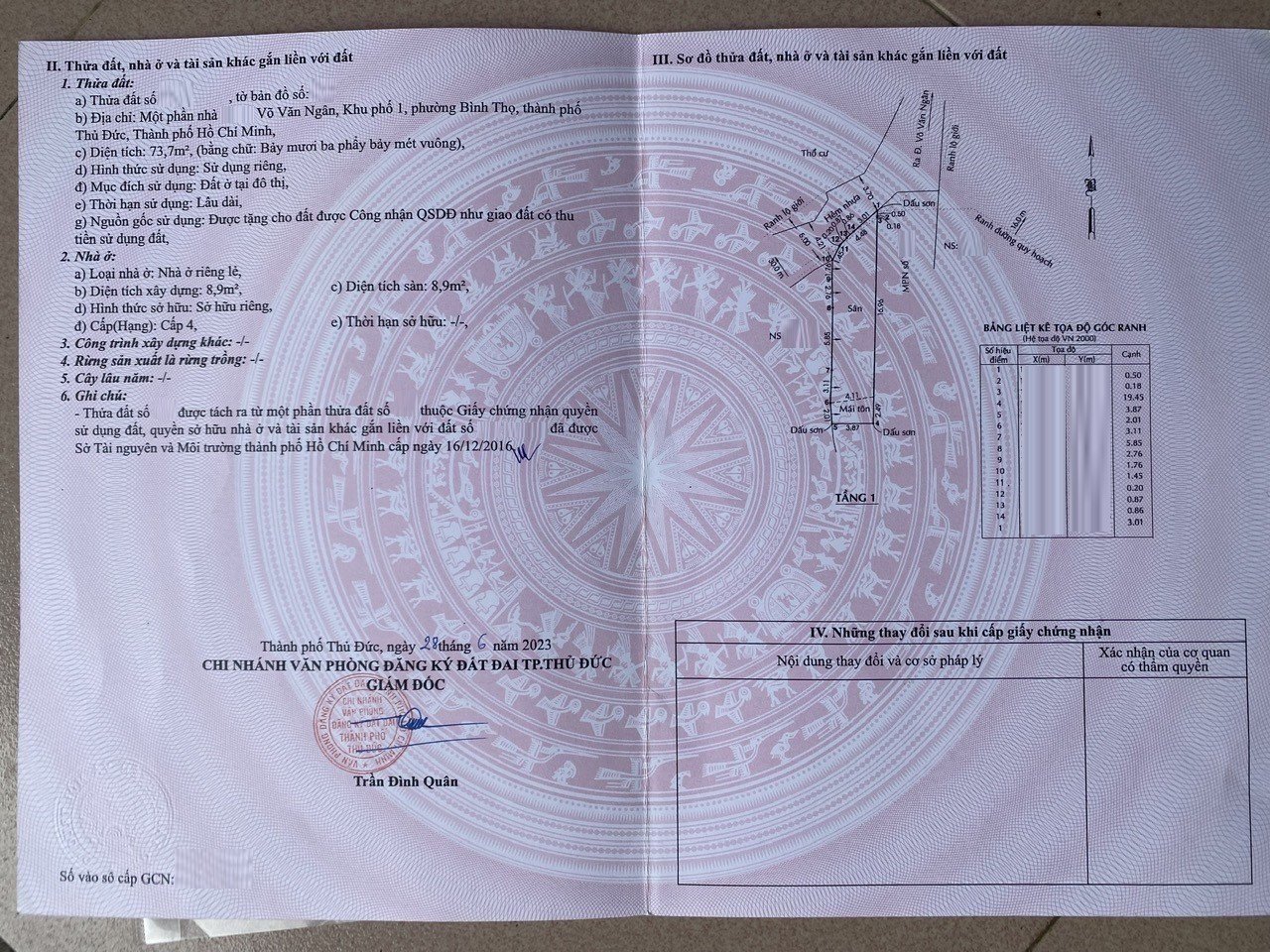 *Diện tích đất công nhận: 73.7m2. Ngang 4.48m x Dài 19.45m.