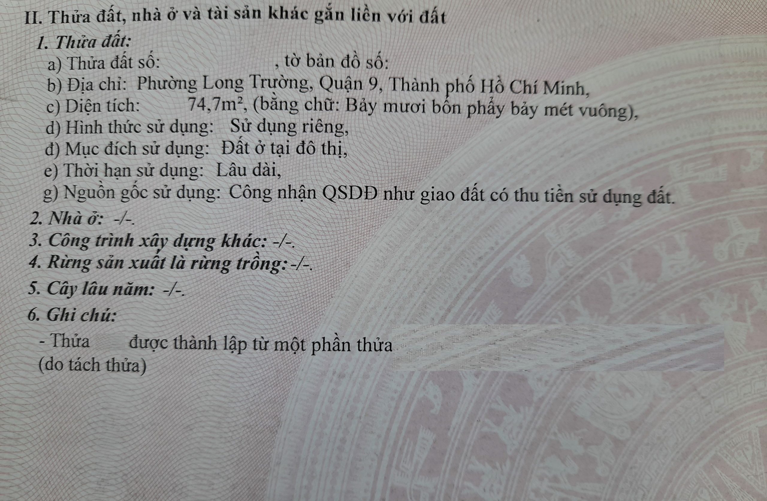 Địa chỉ tài sản: Hẻm 140 Đường Võ Văn Hát, Phường Long Trường., Phường Long Trường, Quận 9, Hồ Chí Minh