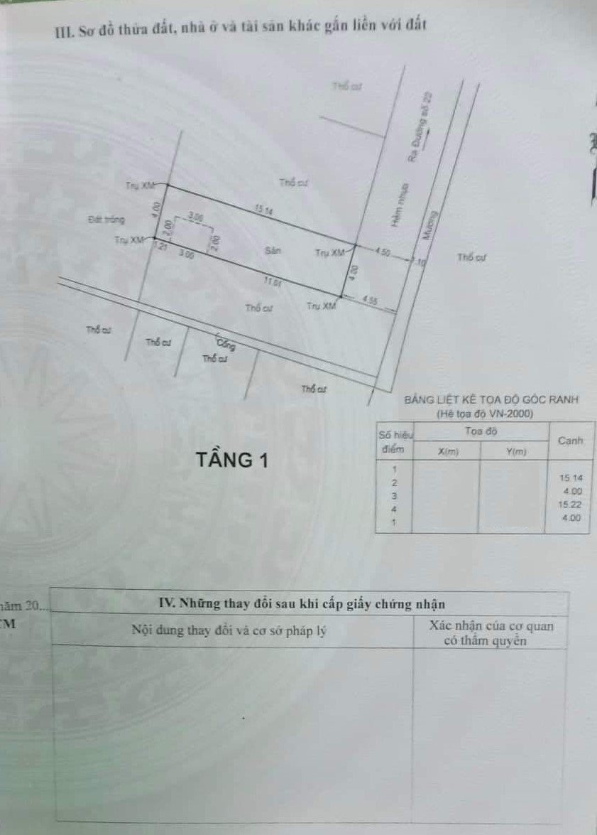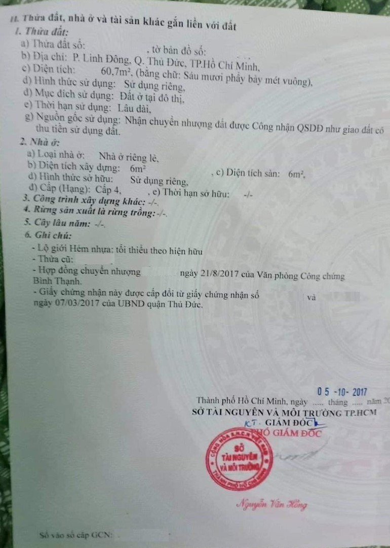 *Diện Tích đất công nhận: 60.7 m2 ngang 4 m x dài 15.1 m