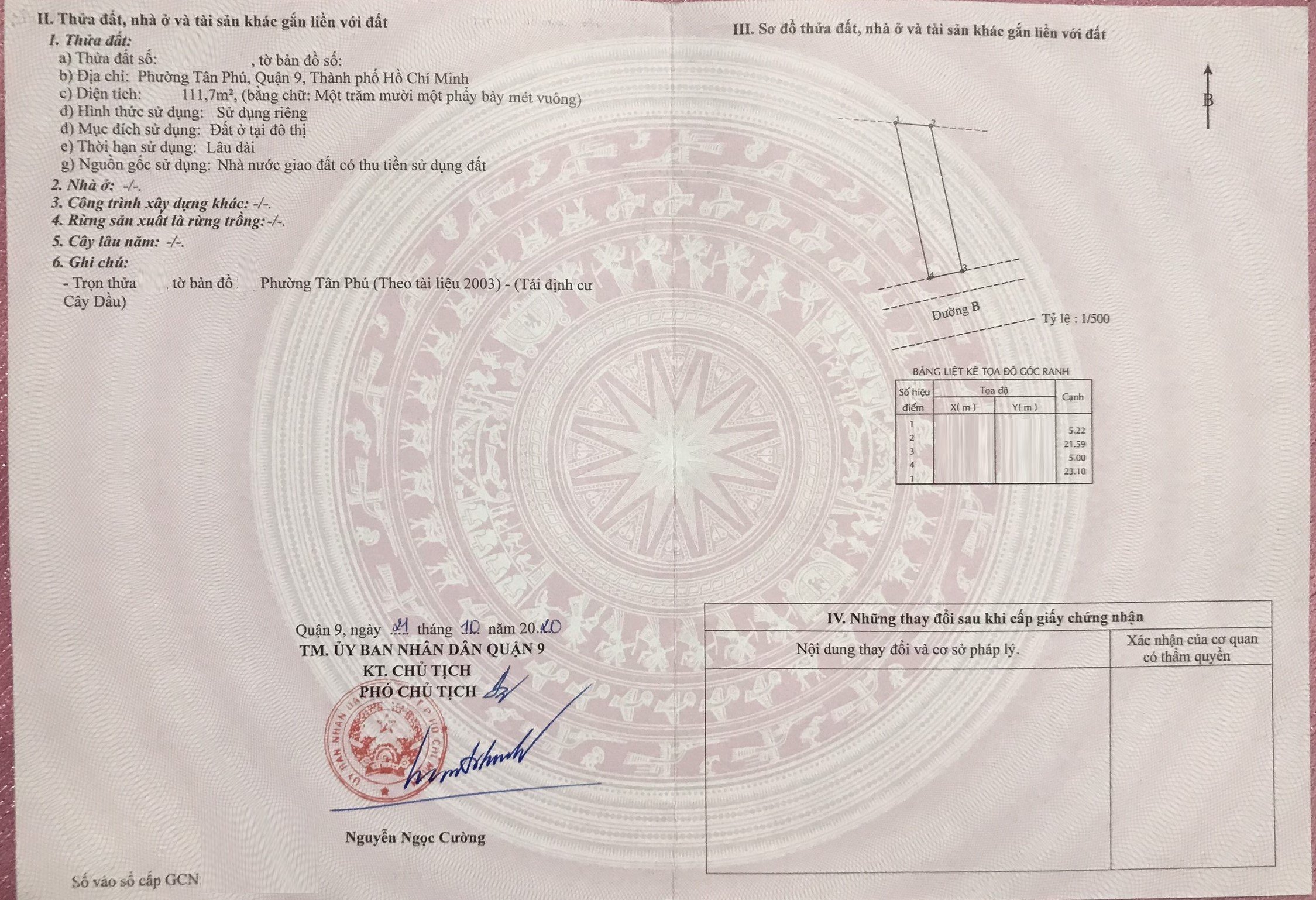 Địa chỉ tài sản: đường 249, Phường Tân Phú, Phường Tân Phú, Quận 9, Hồ Chí Minh