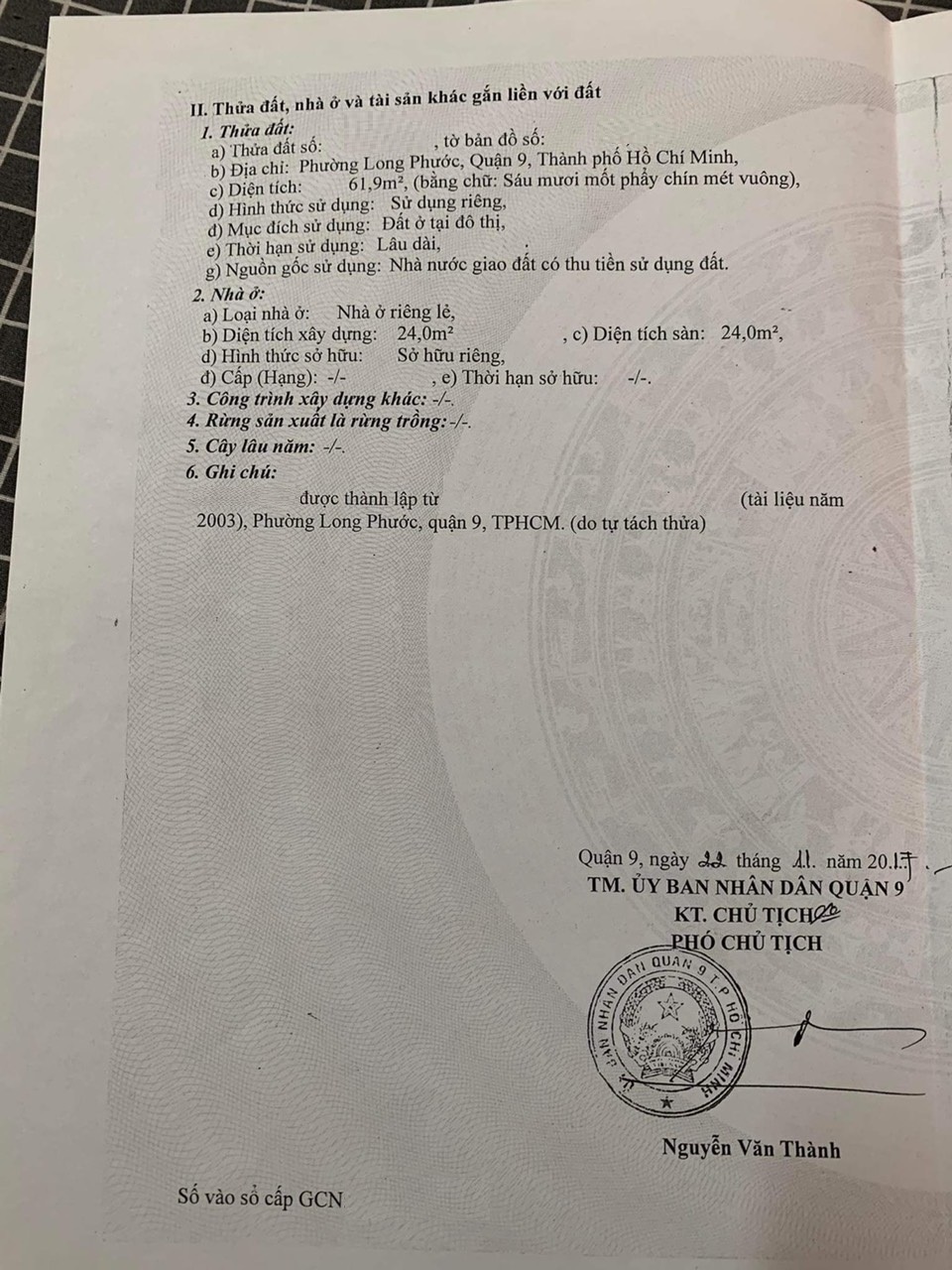Địa chỉ tài sản: hẻm đường 8, phường Long Phước. , Phường Long Phước, Quận 9, Hồ Chí Minh