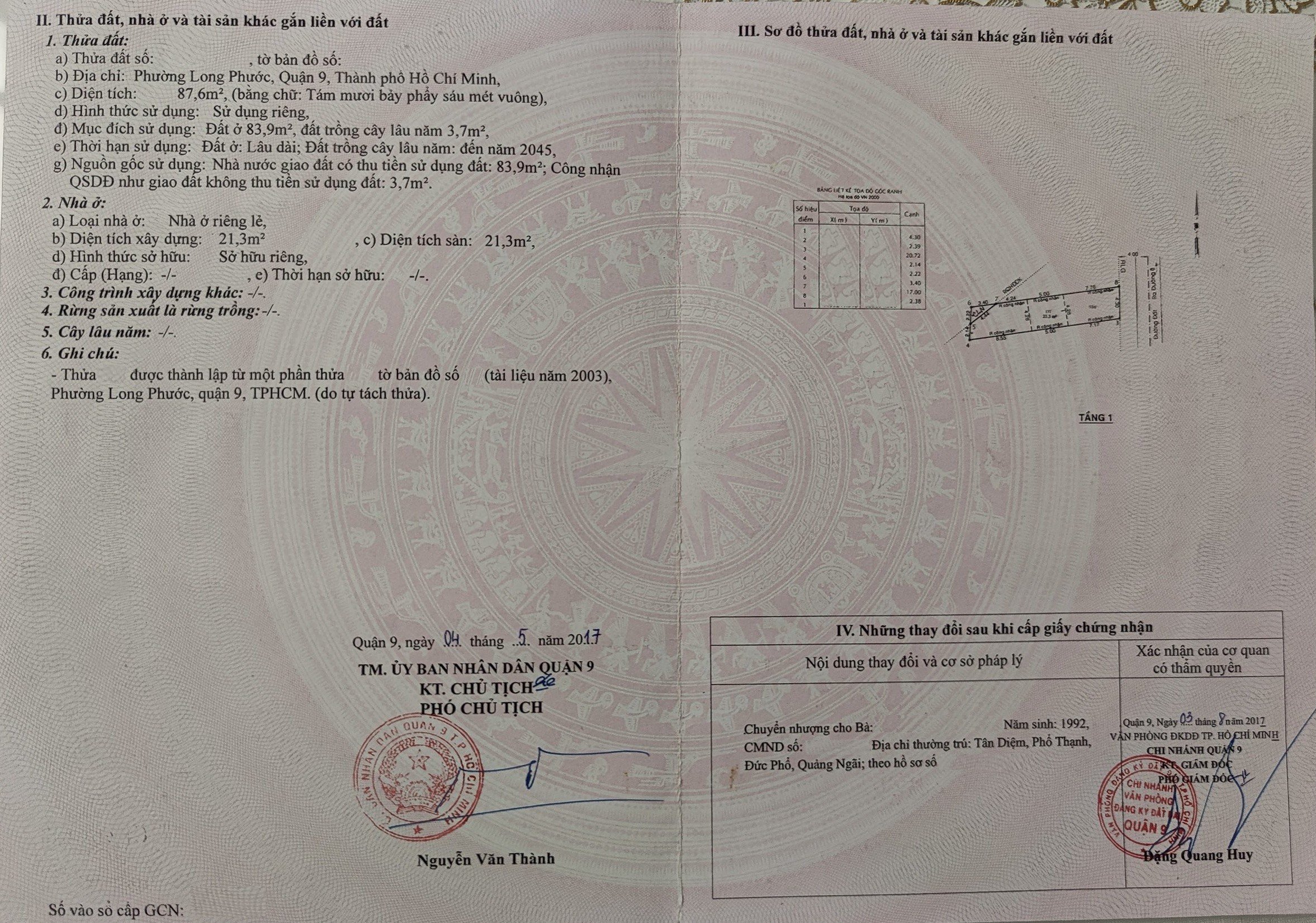 Địa chỉ tài sản: đường 8, Phường Long Phước, Phường Long Phước, Quận 9, Hồ Chí Minh