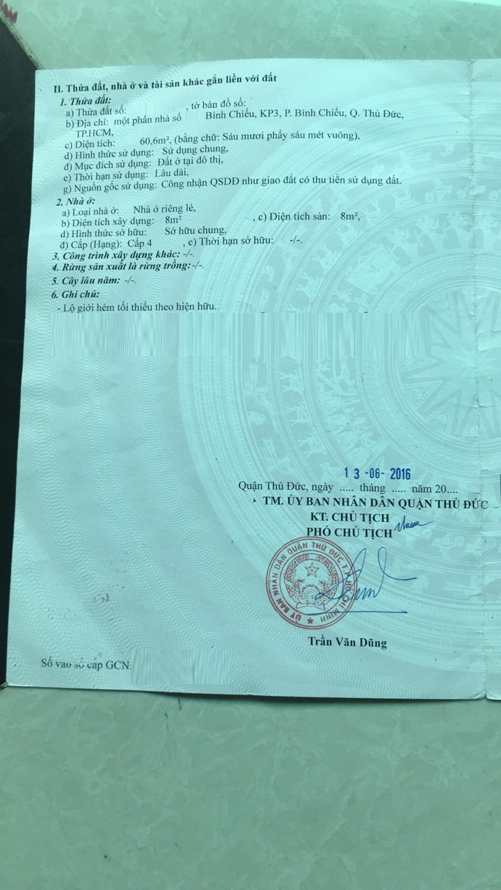 Địa chỉ tài sản: đường Bình Chiểu, P.Bình Chiểu, , Phường Bình Chiểu, Quận Thủ Đức, Hồ Chí Minh