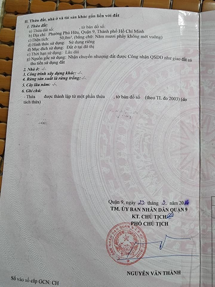 Địa chỉ tài sản: đường Bưng Ông Thoàn, Phường Phú Hữu, Phường Phú Hữu, Quận 9, Hồ Chí Minh