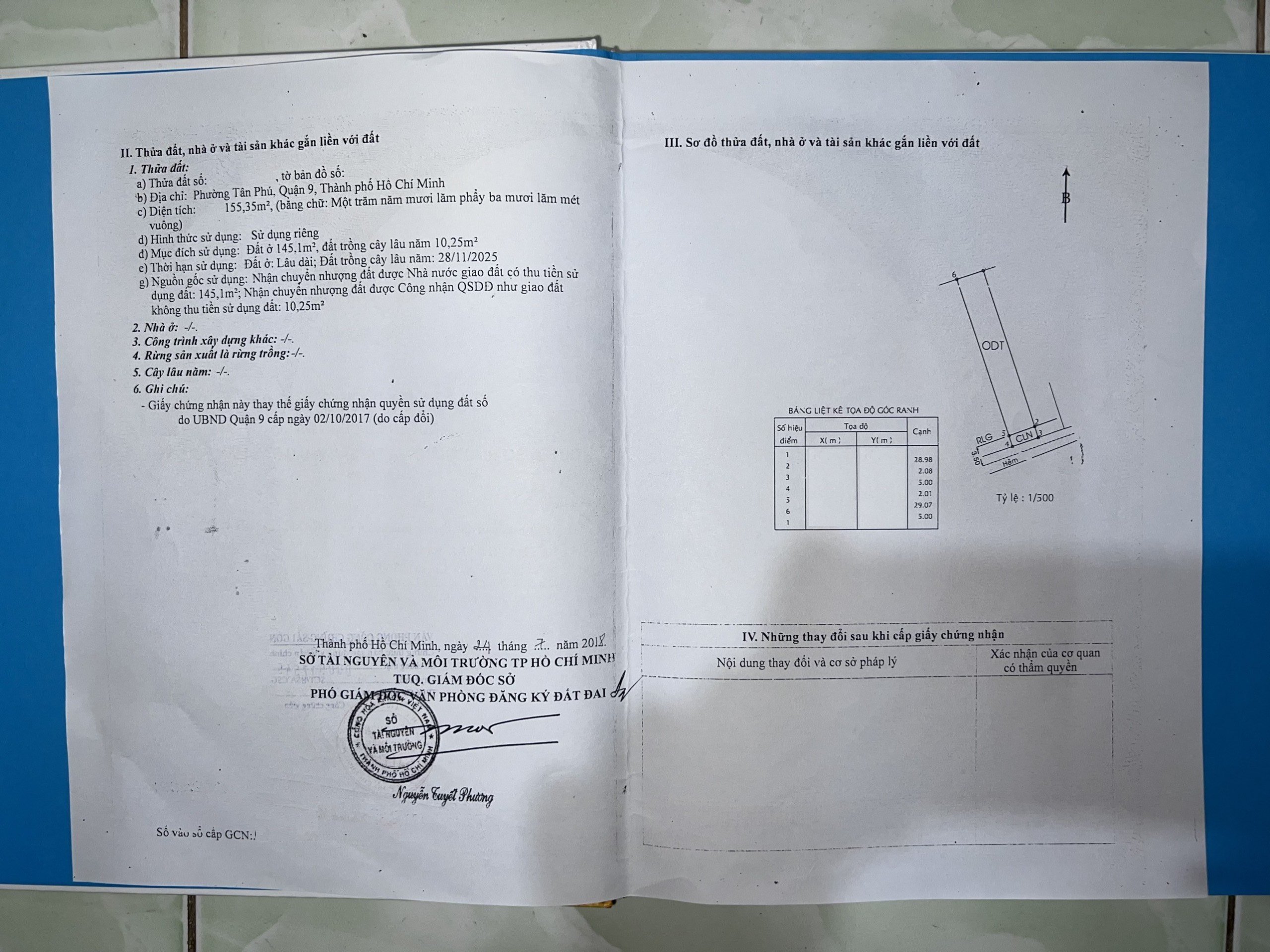 – Sổ 2: 155.35 m2 ngang 5 m x dài 31 m ODT: 145.1 m2 DTC: 10.25 m2
