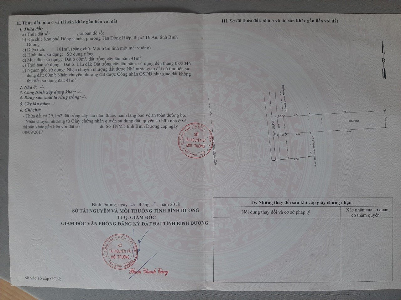 Địa chỉ tài sản: đường Đặng Văn Mây, kp Đông Chiêu, Phường Tân Đông Hiệp, Dĩ An, Phường Tân Đông Hiệp, Thị xã Dĩ An, Bình Dương