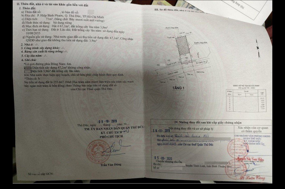 Địa chỉ tài sản: Đường Đinh Thị Thi, Phường Hiệp Bình Phước, Phường Hiệp Bình Phước, Quận Thủ Đức, Hồ Chí Minh