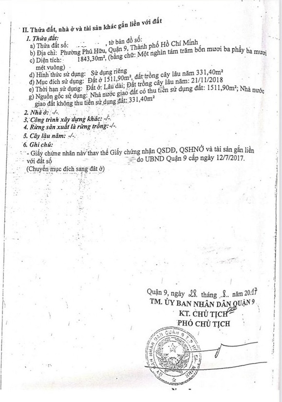 Địa chỉ tài sản: đường Gò Cát, phường Phú Hữu. , Phường Phú Hữu, Quận 9, Hồ Chí Minh