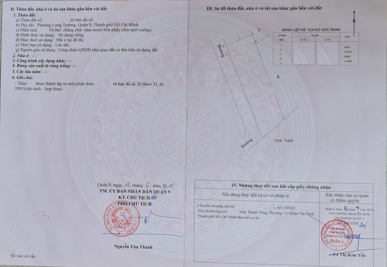 *Diện Tích đất công nhận: 54.9 m2 ngang 4 m x dài 13.7 m