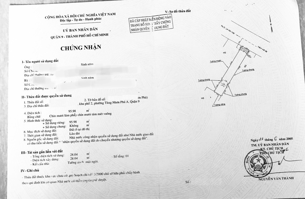 * Diện tích đất ODT: 95.98m2 (ngang 3.95m x dài 24.3m)