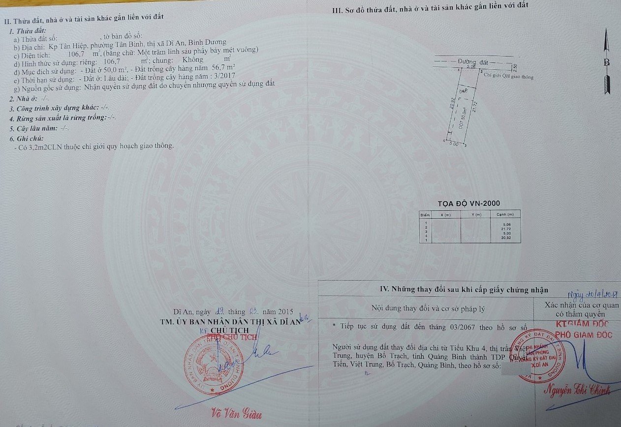 *Diện Tích đất công nhận: 106.7m2 (ngang 5m x dài 21.7m)