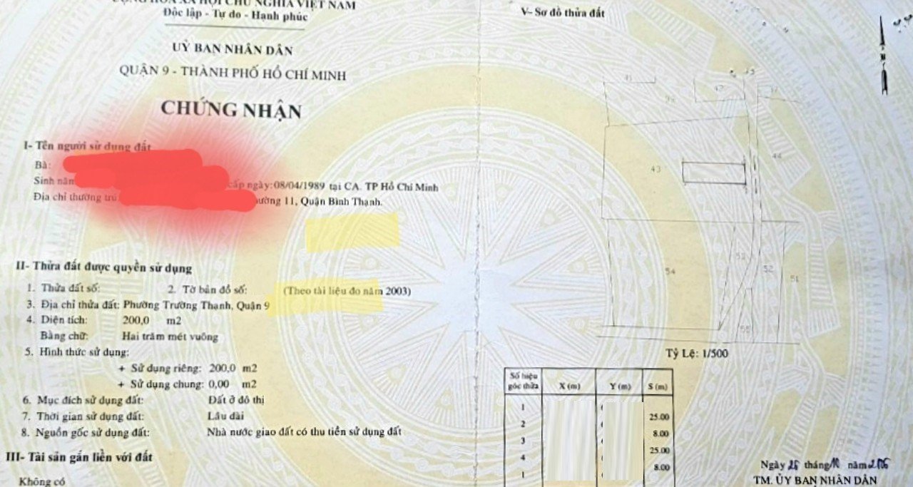 *Diện Tích đất công nhận: 200 m2 ngang 8 m x dài 25 m .
