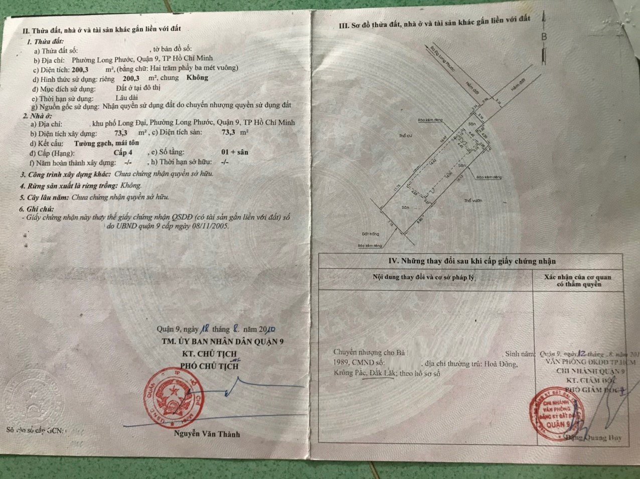 *Diện Tích đất công nhận: 200.3 m2