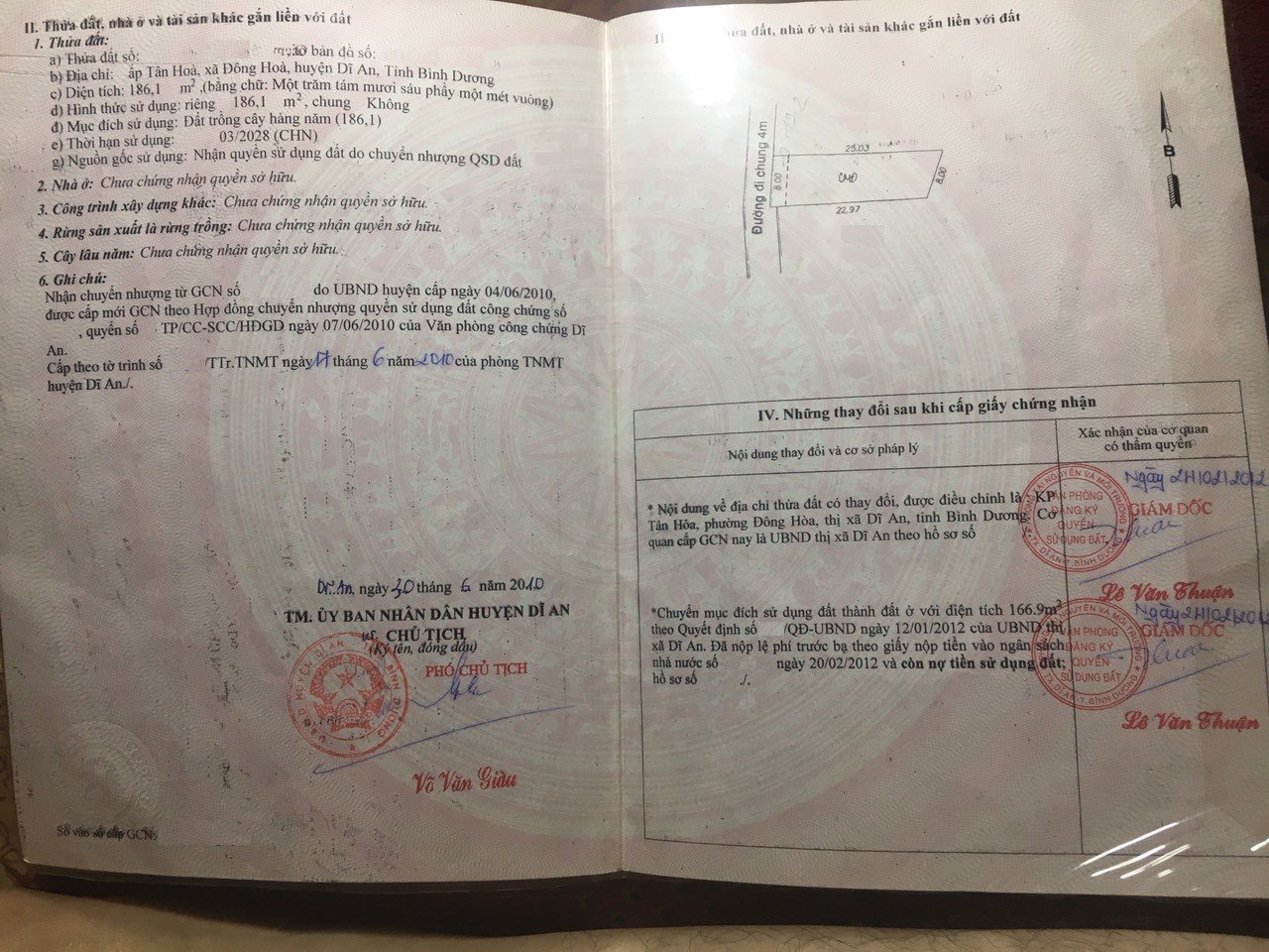 *Diện Tích đất công nhận: 186.1m2 (ngang 8m x dài 23m)