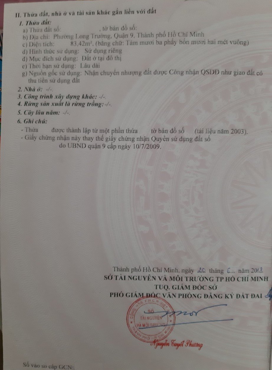 Địa chỉ tài sản: đường Nguyễn Duy Trinh, Long Trường, Phường Long Trường, Quận 9, Hồ Chí Minh