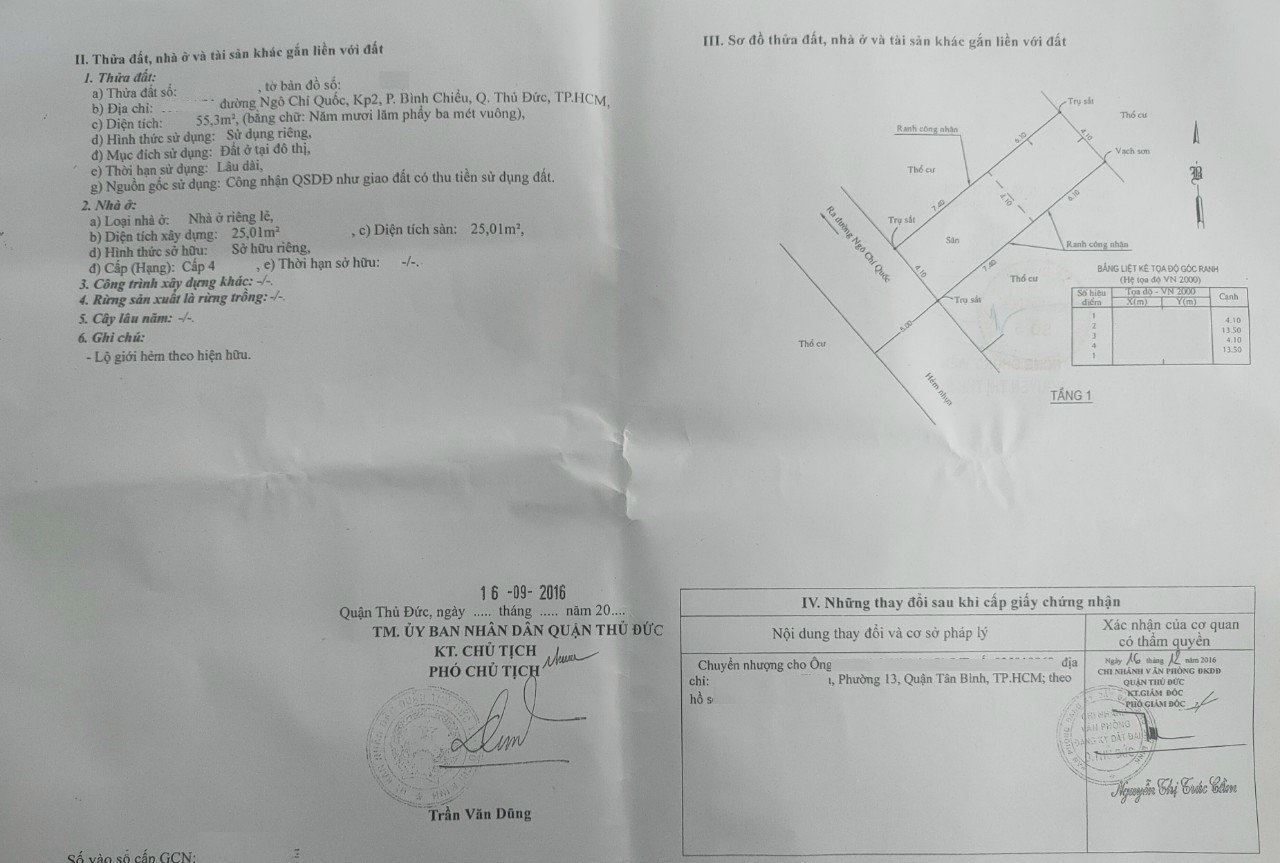 Địa chỉ tài sản: Đường Nguyễn Thị Thích, Phường Bình Chiểu, Phường Bình Chiểu, Quận Thủ Đức, Hồ Chí Minh