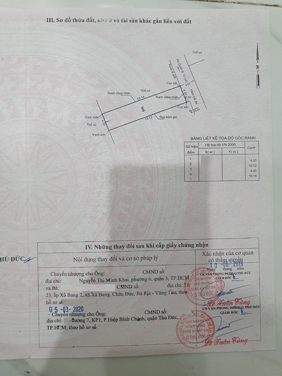 *Diện Tích đất công nhận: 76.5 m2 ngang 4 m x dài 19.14 m Thổ cư m2 đất trồng cây m2