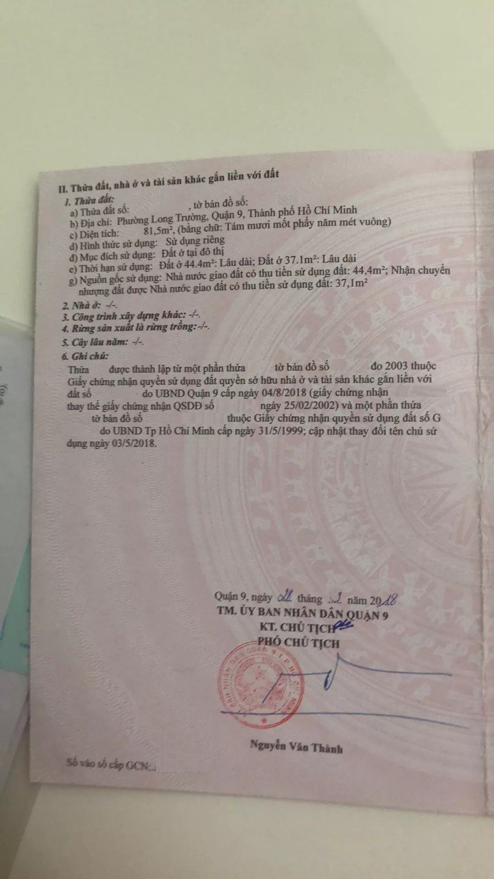 Địa chỉ tài sản: đường số 1, Phường Long Trường, Phường Long Trường, Quận 9, Hồ Chí Minh