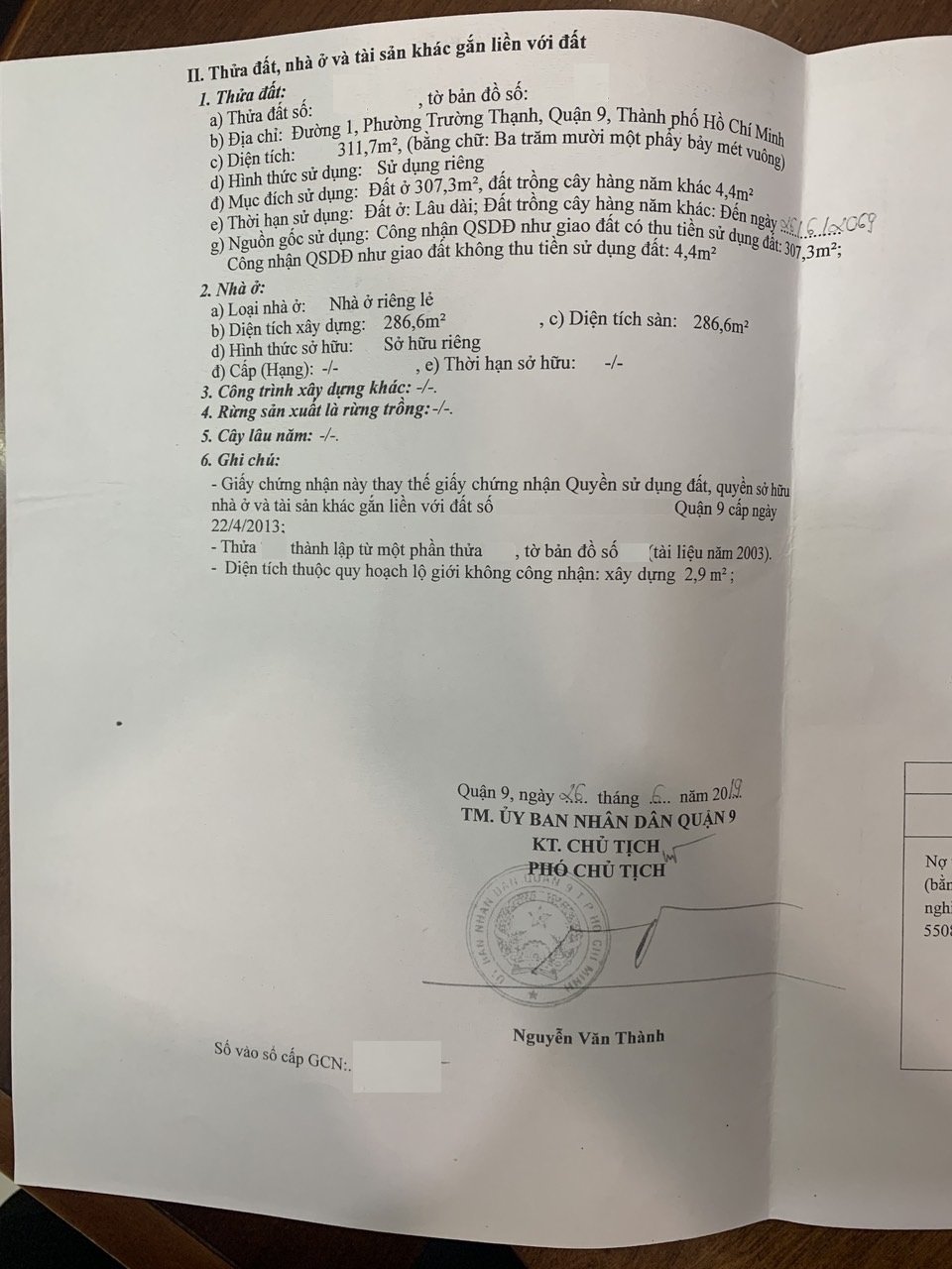 Địa chỉ tài sản: Đường số 1, Phường Trường Thạnh., Phường Trường Thạnh, Quận 9, Hồ Chí Minh