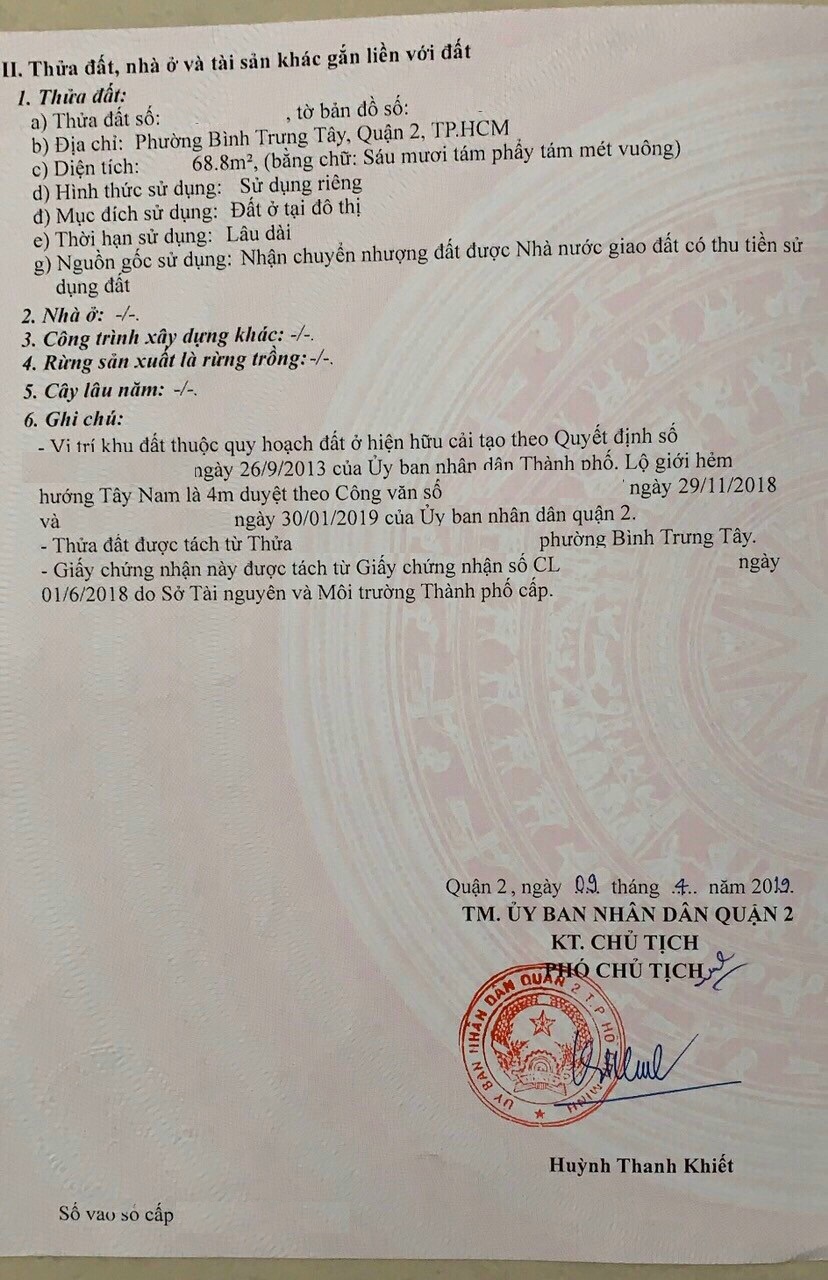 Địa chỉ tài sản: đường số 10, phường Bình Trưng Tây, Phường Bình Trưng Tây, Quận 2, Hồ Chí Minh