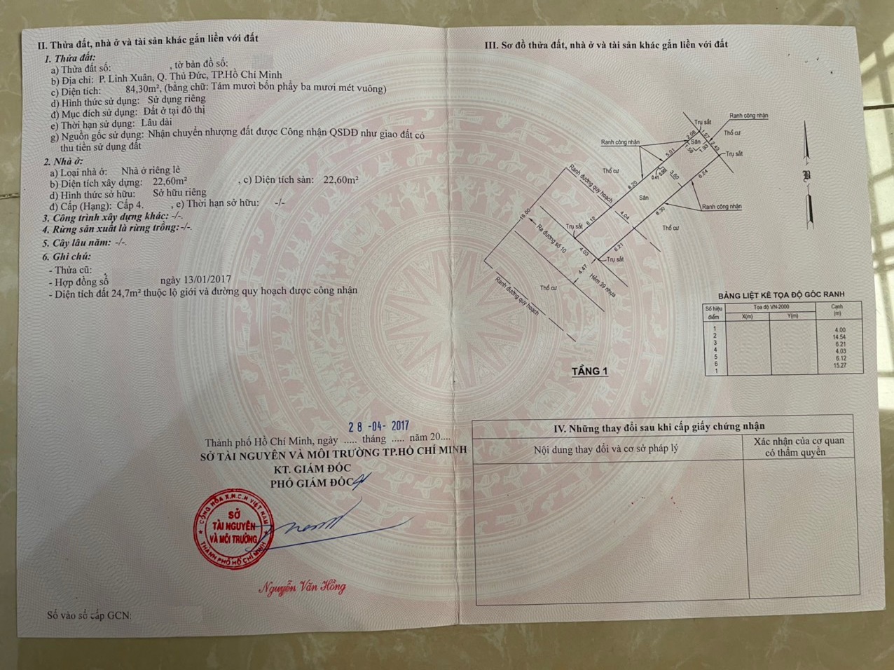 – Diện tích: 84.3m2 ngang 4.03m x 20.9m