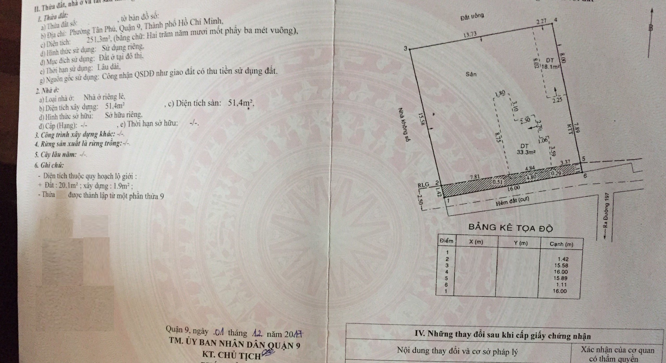 *Diện Tích đất công nhận: 251.3 m2 ngang 16 m x dài 15.7 m