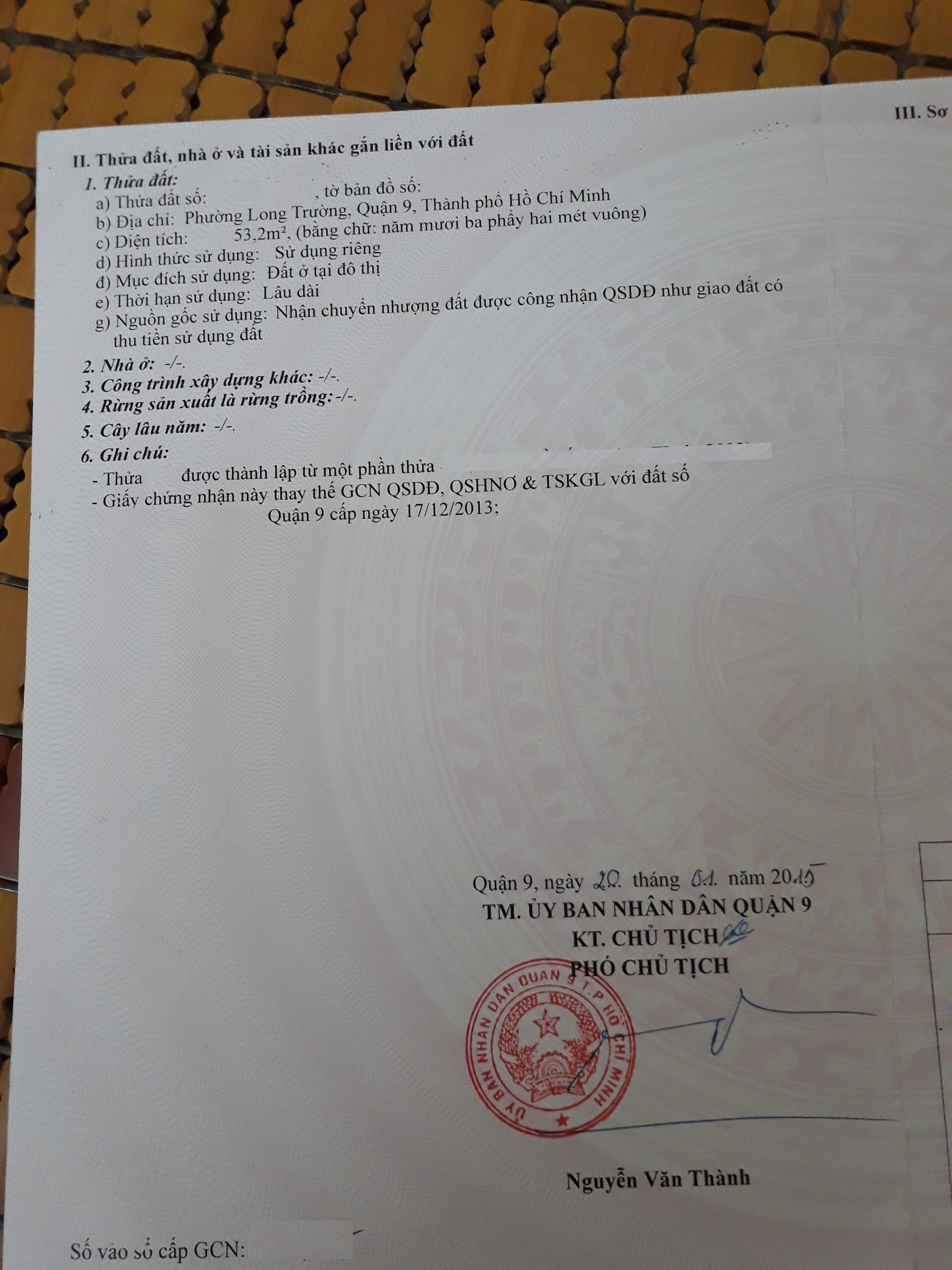 Địa chỉ tài sản: Đường số 6, Phường Long Trường, Phường Long Trường, Quận 9, Hồ Chí Minh
