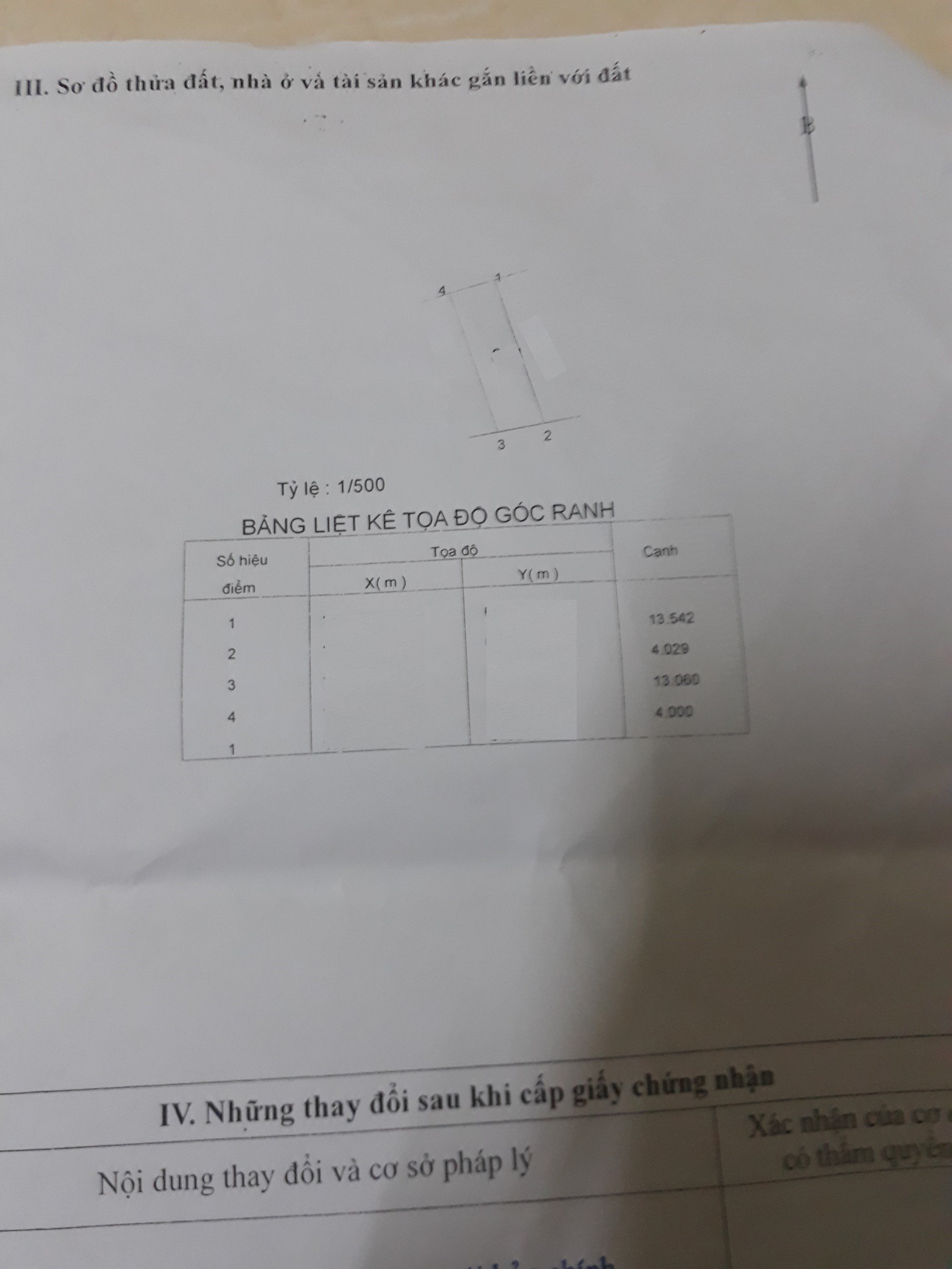 * Diện tích đất ODT: 53.2m2 (ngang 4m x dài 13.5m)