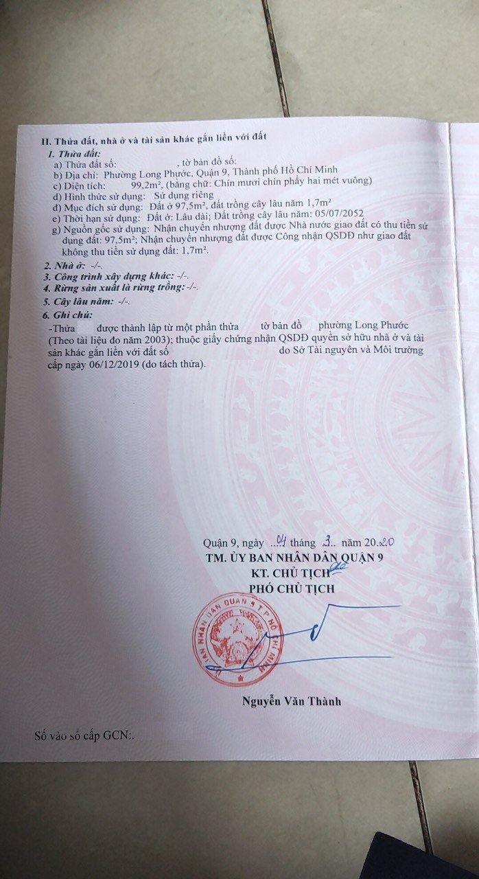 Địa chỉ tài sản: đường số 8, phường Long Phước, Phường Long Phước, Quận 9, Hồ Chí Minh