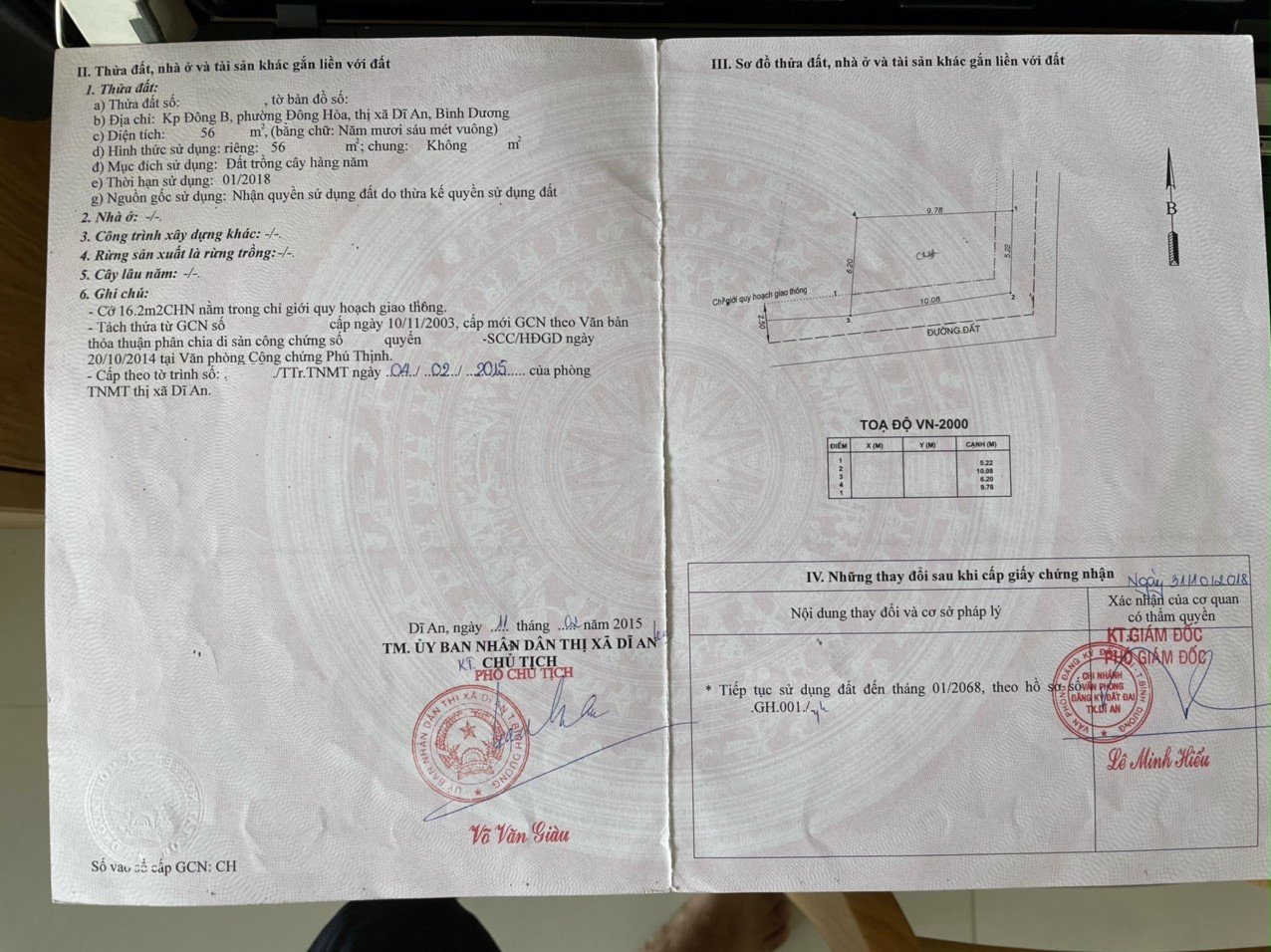 Địa chỉ tài sản: Đường Trần Hưng Đạo, phường Đông Hòa, Dĩ An, Phường Đông Hòa, Thị xã Dĩ An, Bình Dương