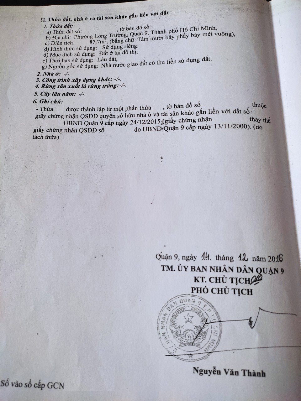 Địa chỉ tài sản: Đường Trường Lưu, Phường Long Trường., Phường Long Trường, Quận 9, Hồ Chí Minh