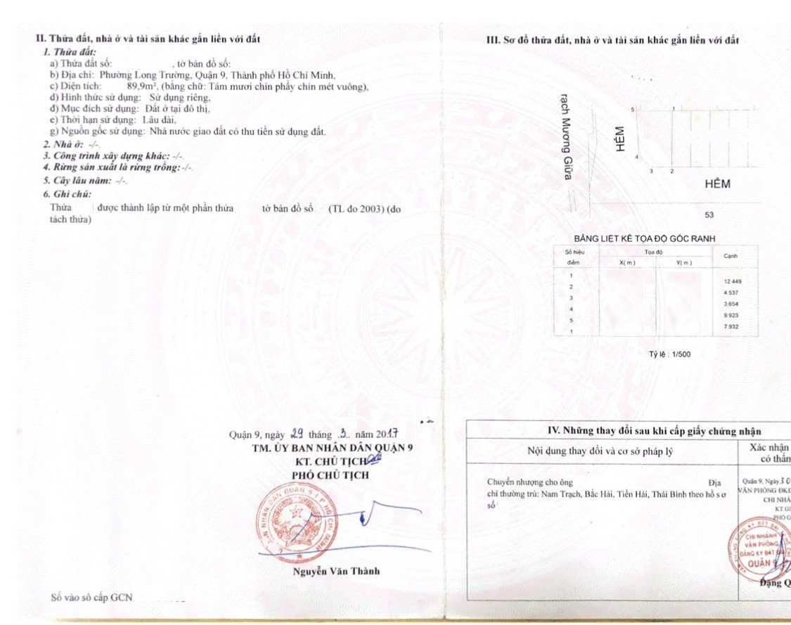 *Diện Tích đất công nhận: 89.9m2 m2 ngang 7.5 m x dài 12.4 m