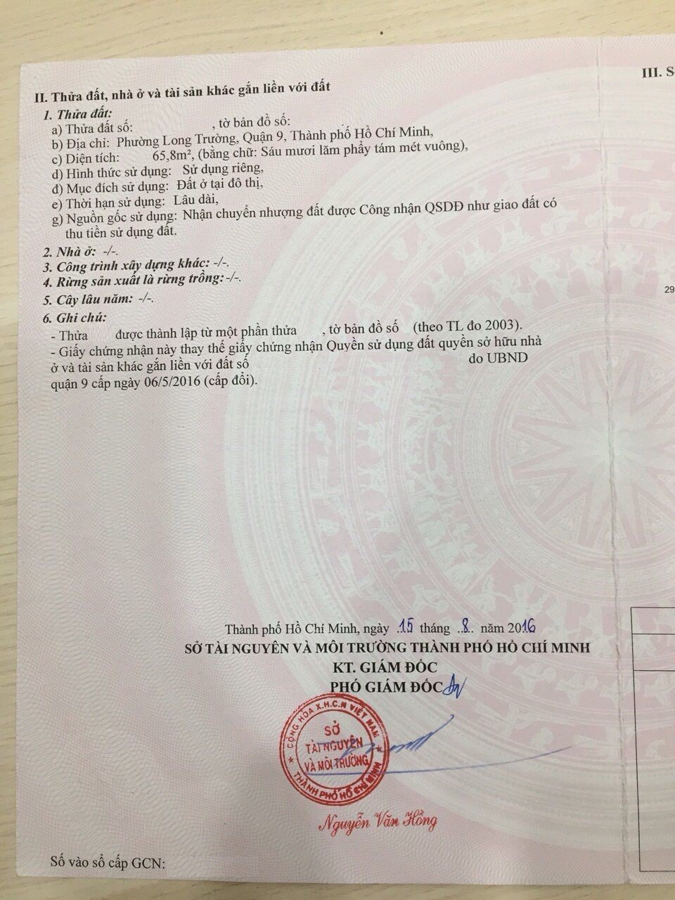 Địa chỉ tài sản: đường Võ Văn Hát, Phường Long Trường, Phường Long Trường, Quận 9, Hồ Chí Minh