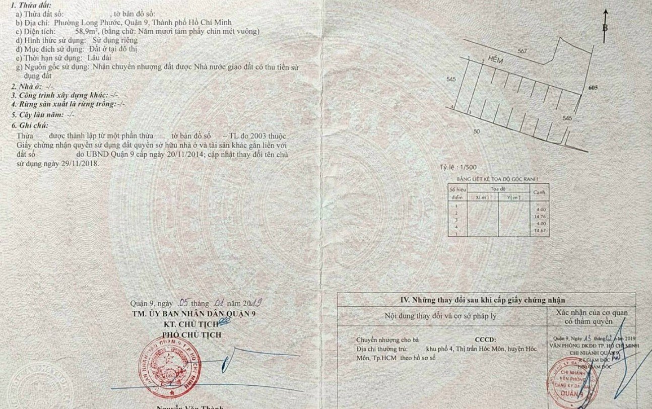 Diện Tích đất công nhận: 58.9 m2 ngang 4 m x dài 14.76 m