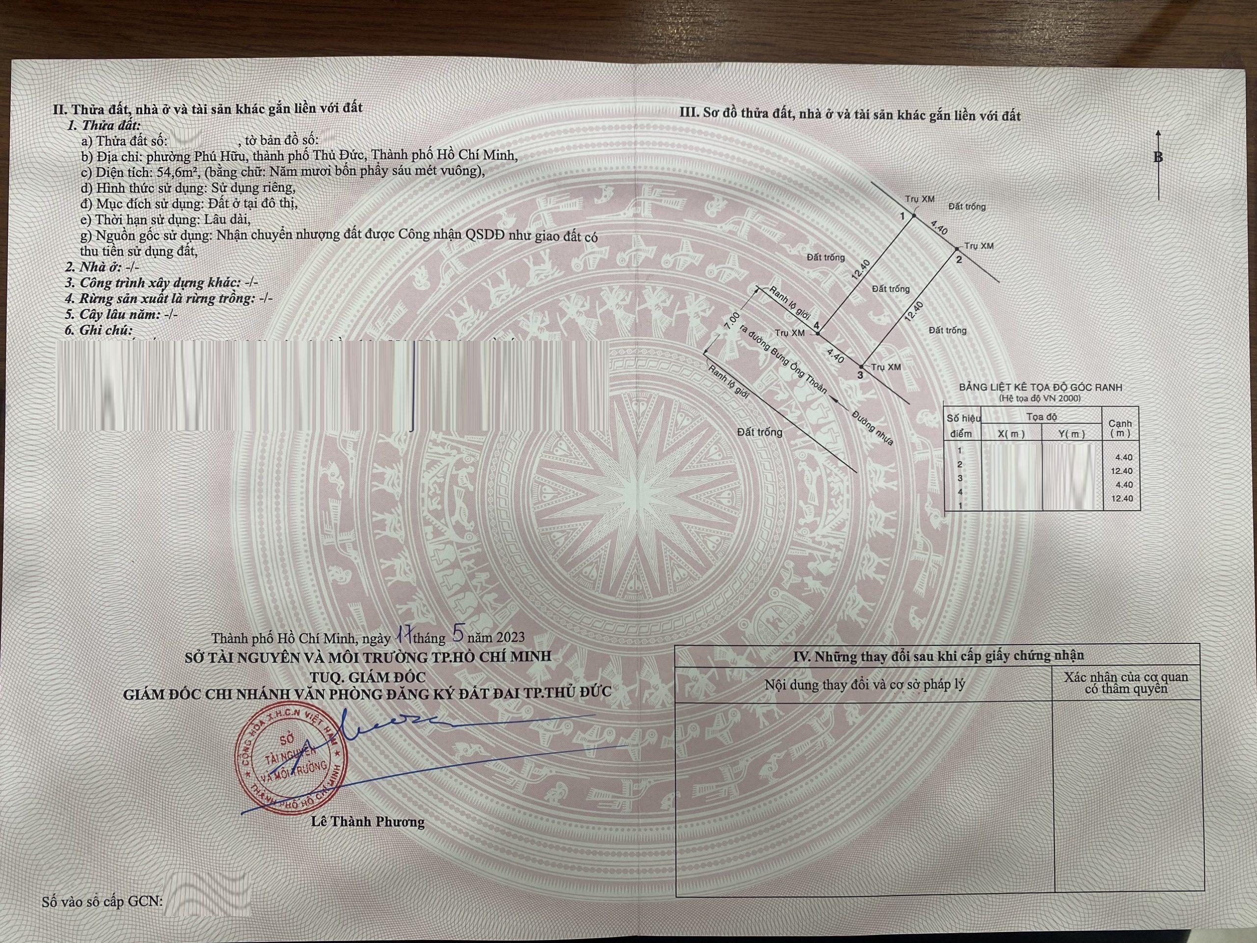 *Diện Tích đất công nhận: 54.6m2 ngang 4.4m x dài 12.4m.