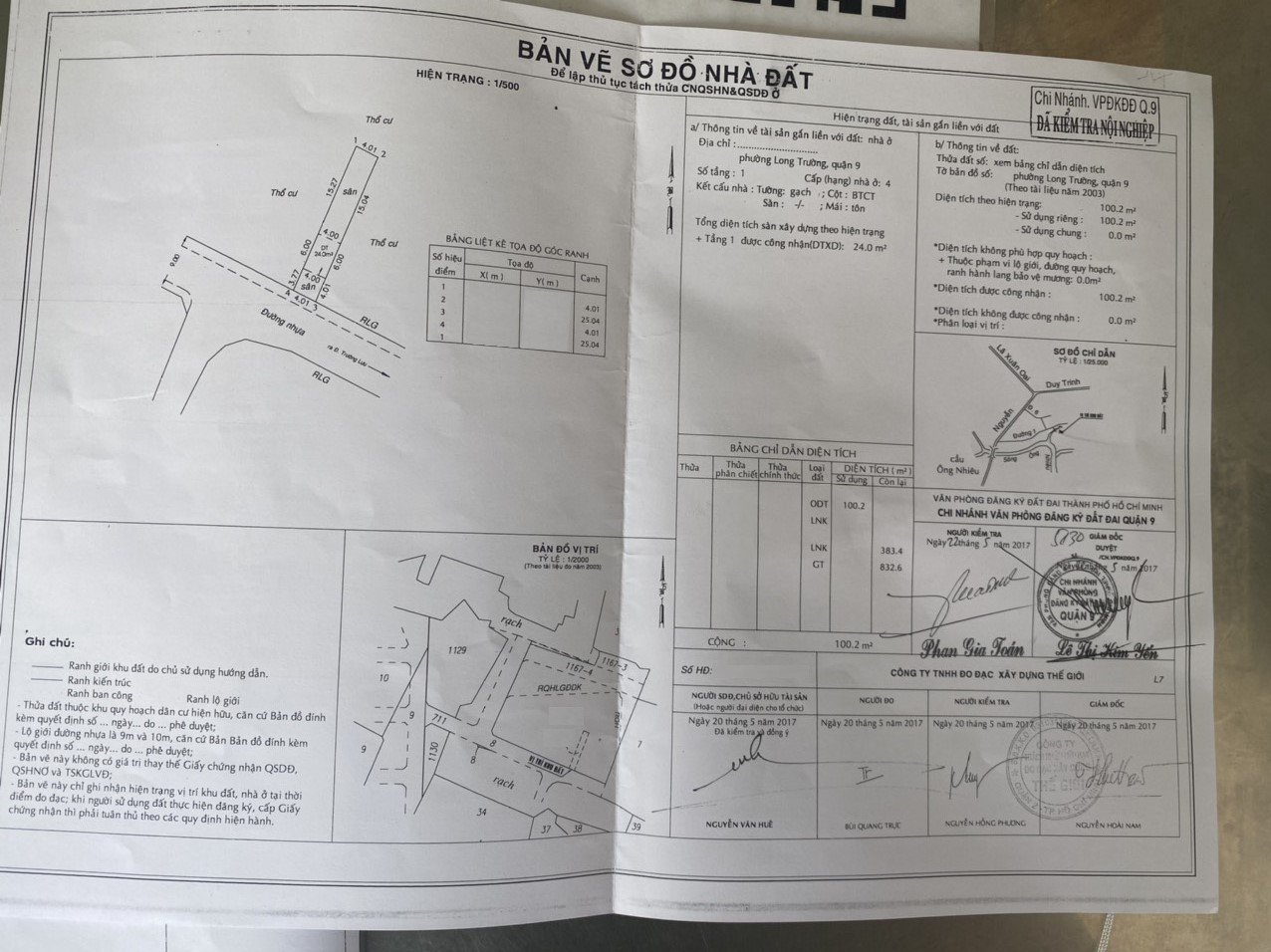 *Diện Tích đất công nhận: 100.2 m2 ngang 4 m x dài 25 m