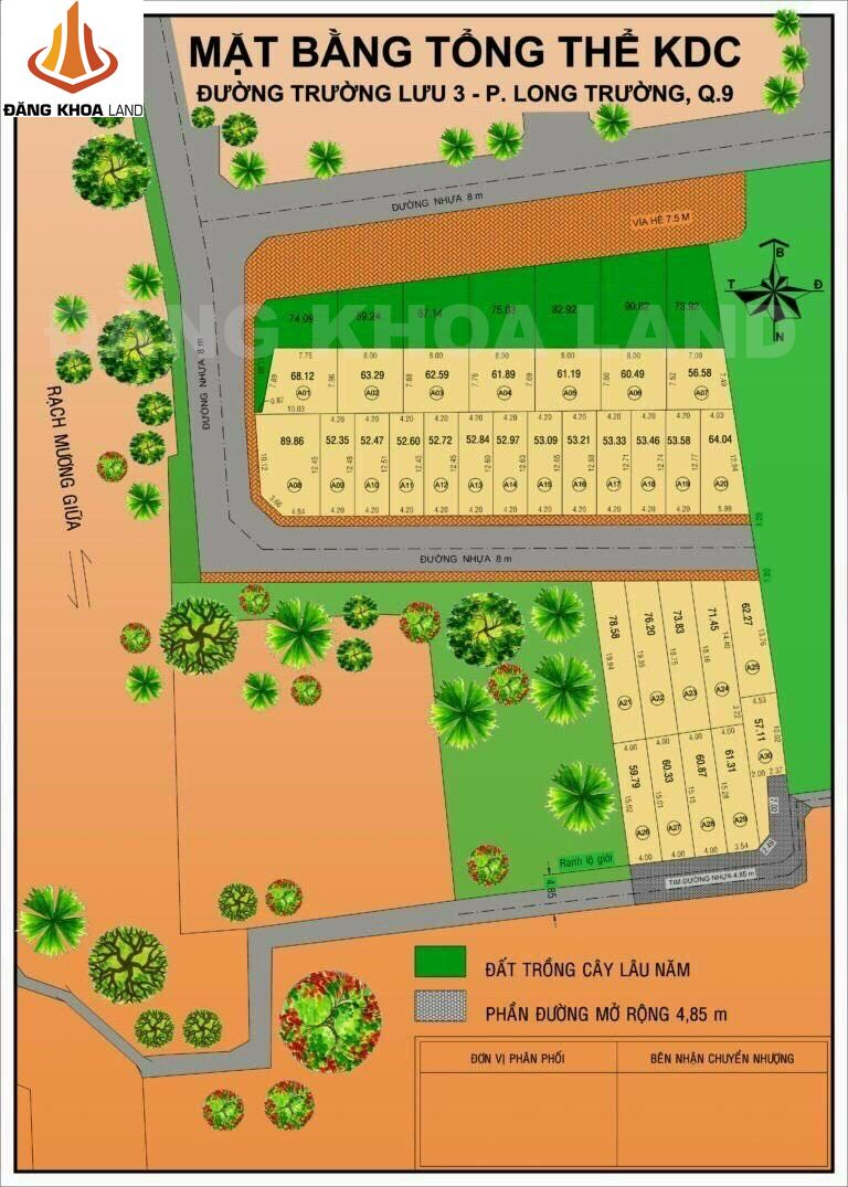 <247LTQ9>: Bán đất, KDC Việt Nhân Eco2 – Đường Trường Lưu 3, Phường Long Trường. Đường nhựa xe hơi 6m. Đất vuông vức xây dựng tự do